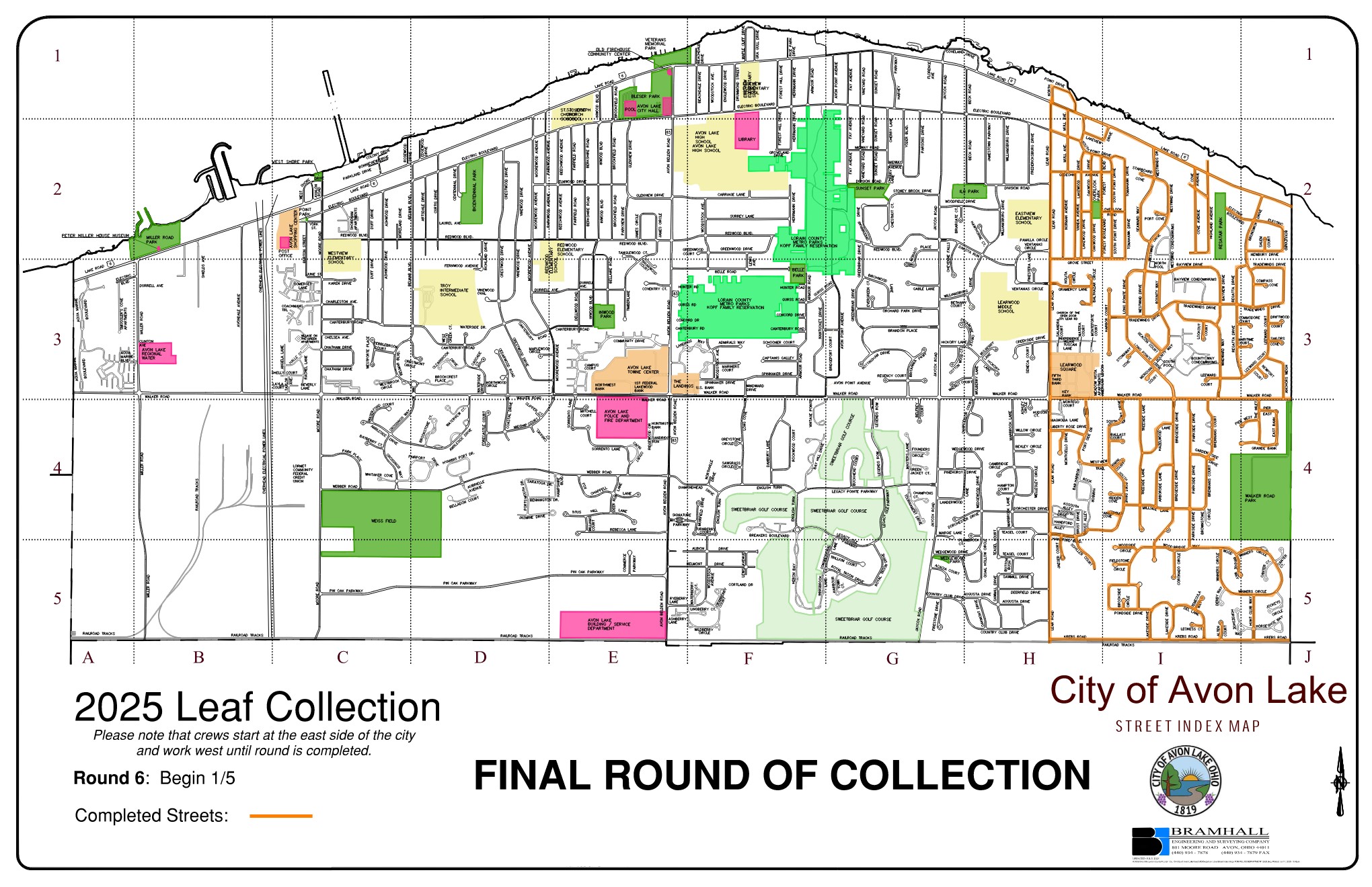 The last round of City of Avon Lake's curbside leaf collection will begin the week of January 5, 2026, starting on the east side of town, and moving west. Winter weather may impact the collection progress, but the round will be completed.