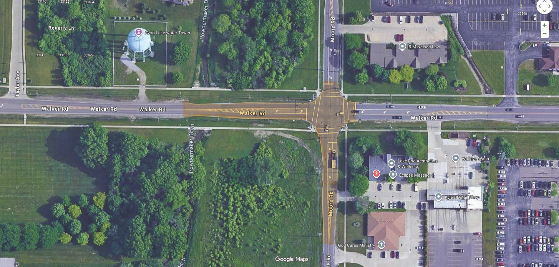 The City of Avon Lake's Walker Road Phase 5 construction project starts approximately 1,600 feet east of Miller Road (at the old railroad crossing) and continues eastward to Moore Road.