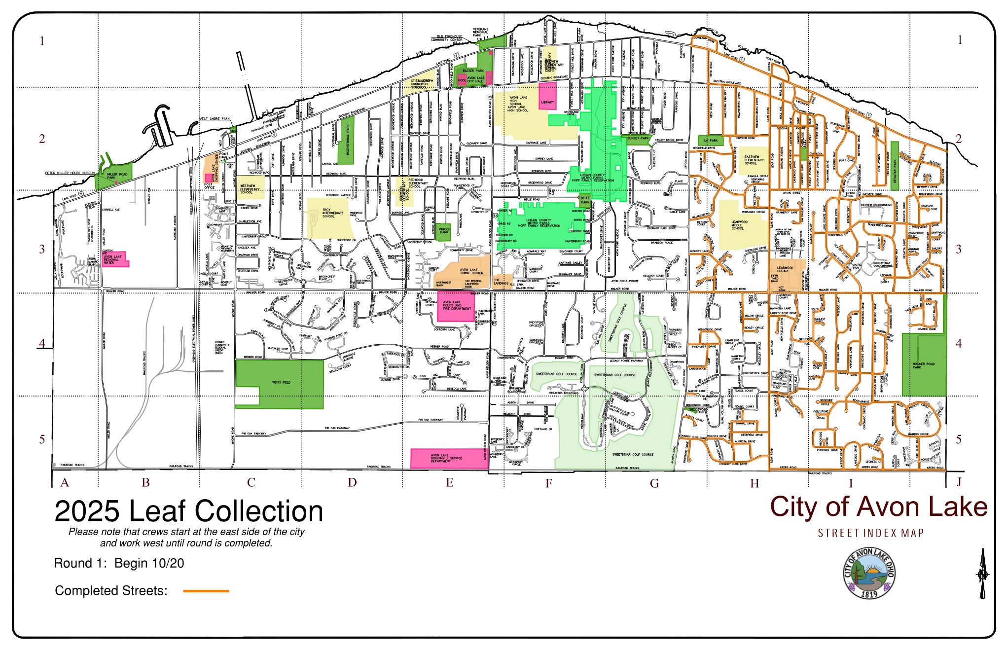 The City of Avon Lake Public Works Department curbside leaf collection service is ongoing.