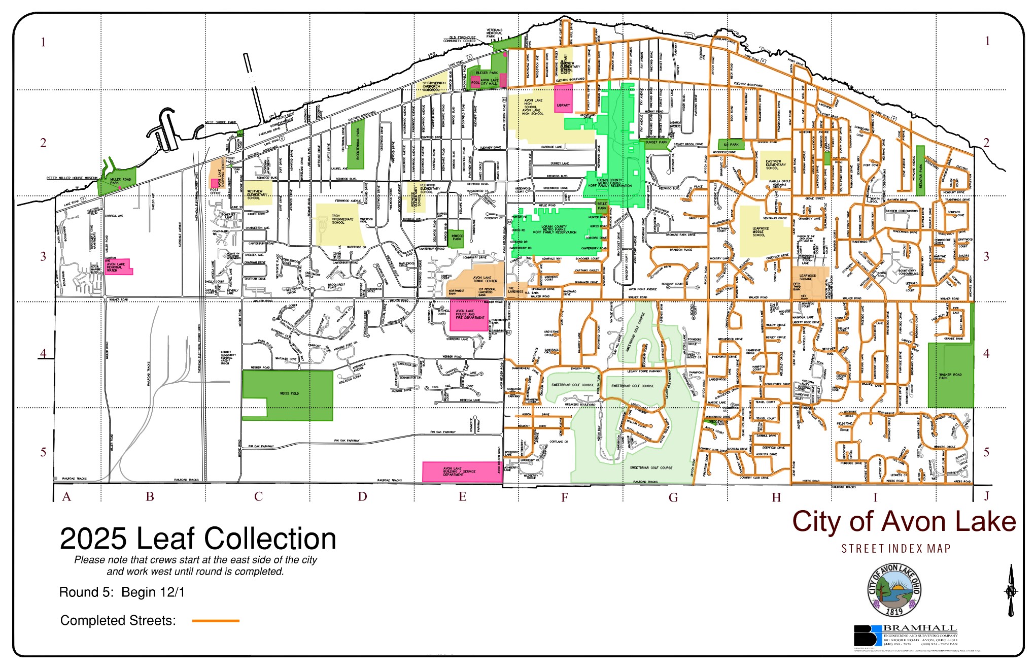 The City of Avon Lake Public Works Department curbside leaf collection service is ongoing. Winter weather has been impacting collections, but crews will be active collecting leaves that are set out currently when weather permits.