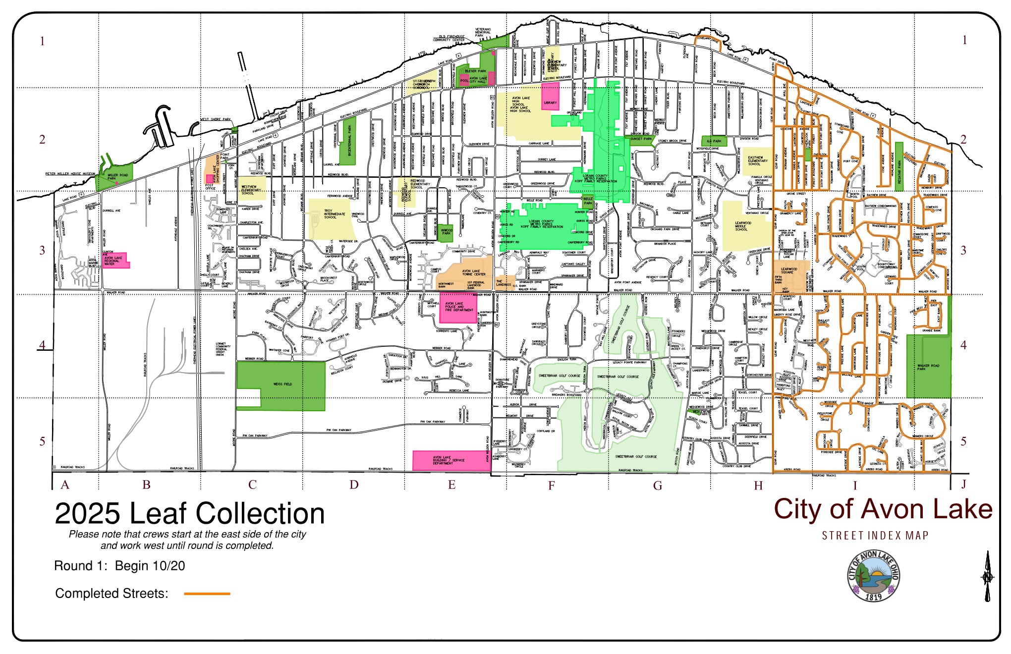 The City of Avon Lake Public Works Department will begin curbside leaf collection service on October 20, 2025.