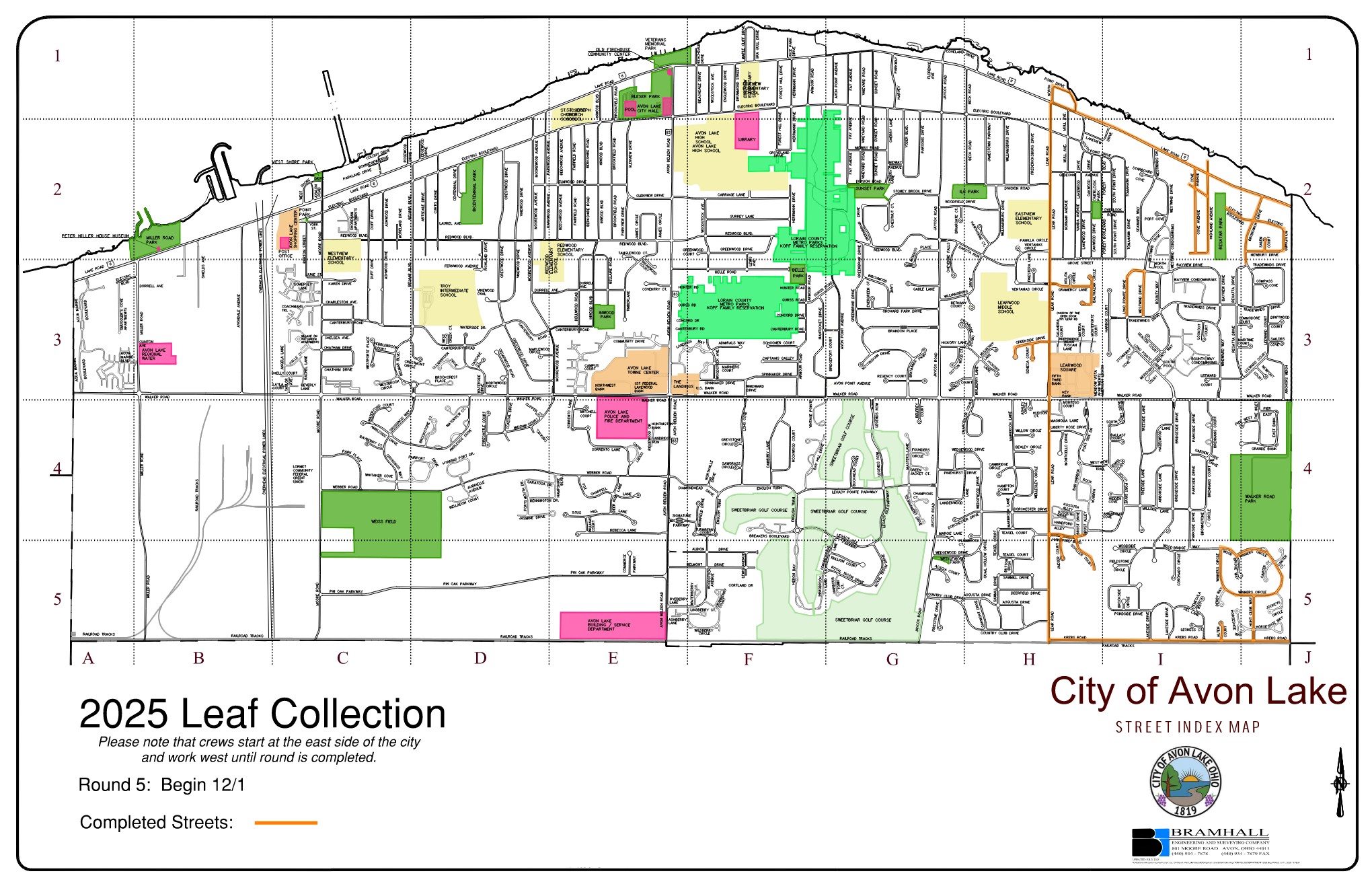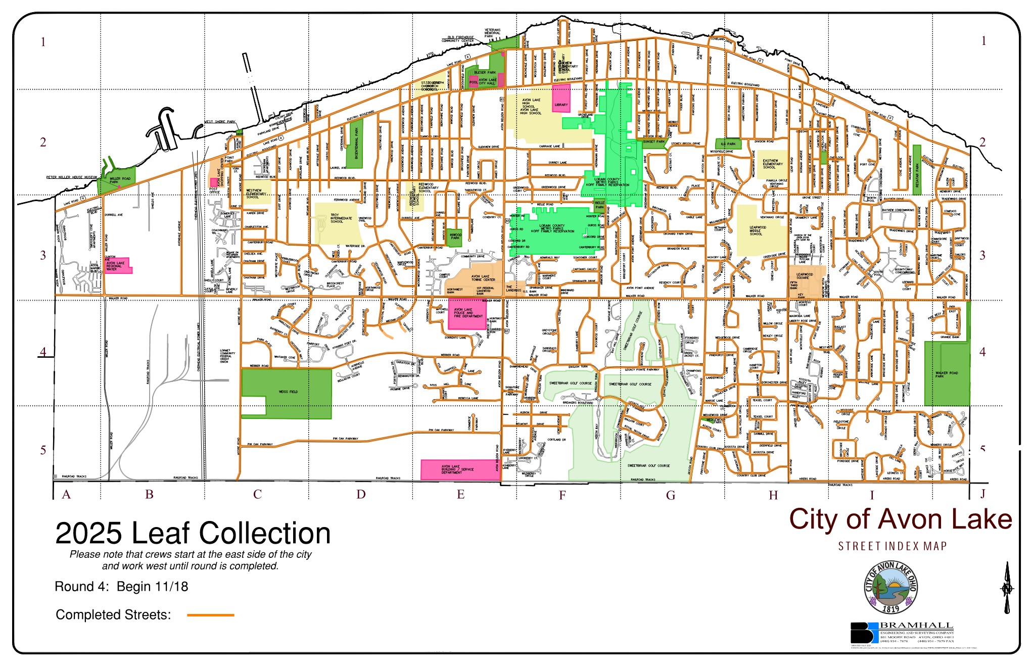 The City of Avon Lake Public Works Department curbside leaf collection service is ongoing.